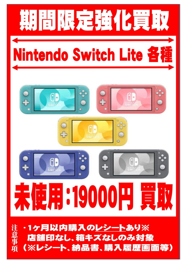 『Switch Lite』『Switchバッテリー強化モデル』を数量限定で高価買取中で…