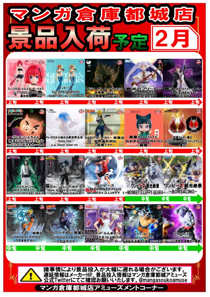 2月入荷予定のアミューズ景品一覧更新しました👍💥 ぜひご覧くださ~い!…