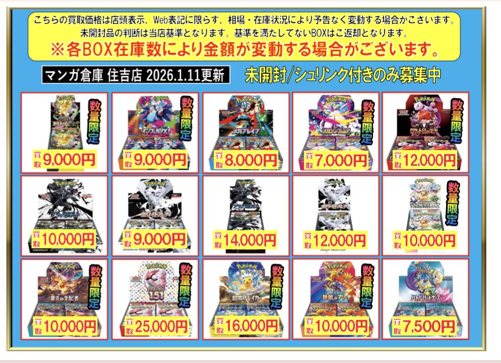 ポケモンカードBOX買取金額を更新致しました! ※2026/1/11現在の価格とな…
