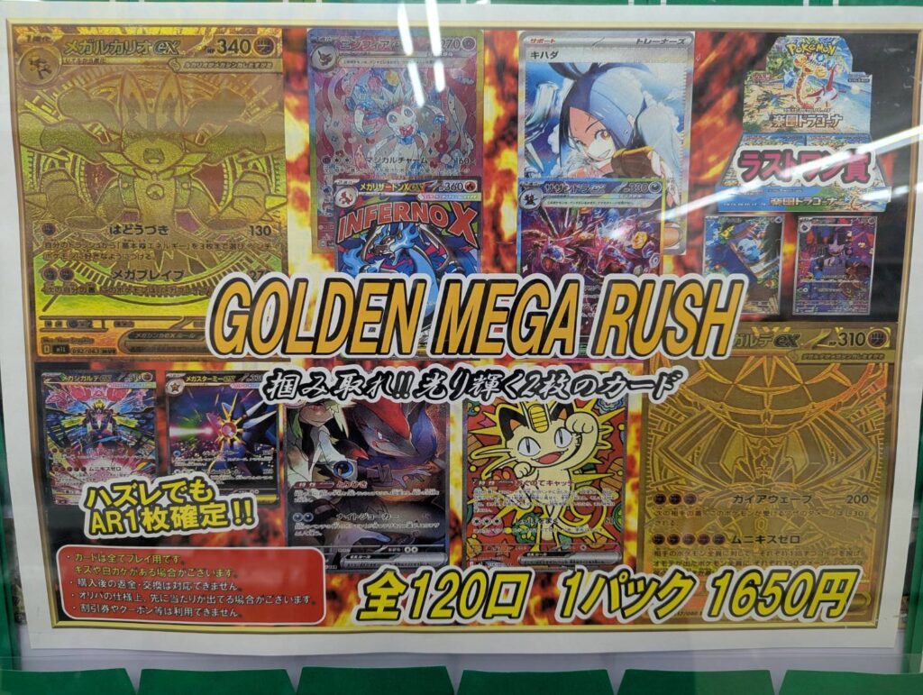 住吉店 ポケモンカードオリパ GOLDEN MEGA RUSH 全120口 1パック1650円に…