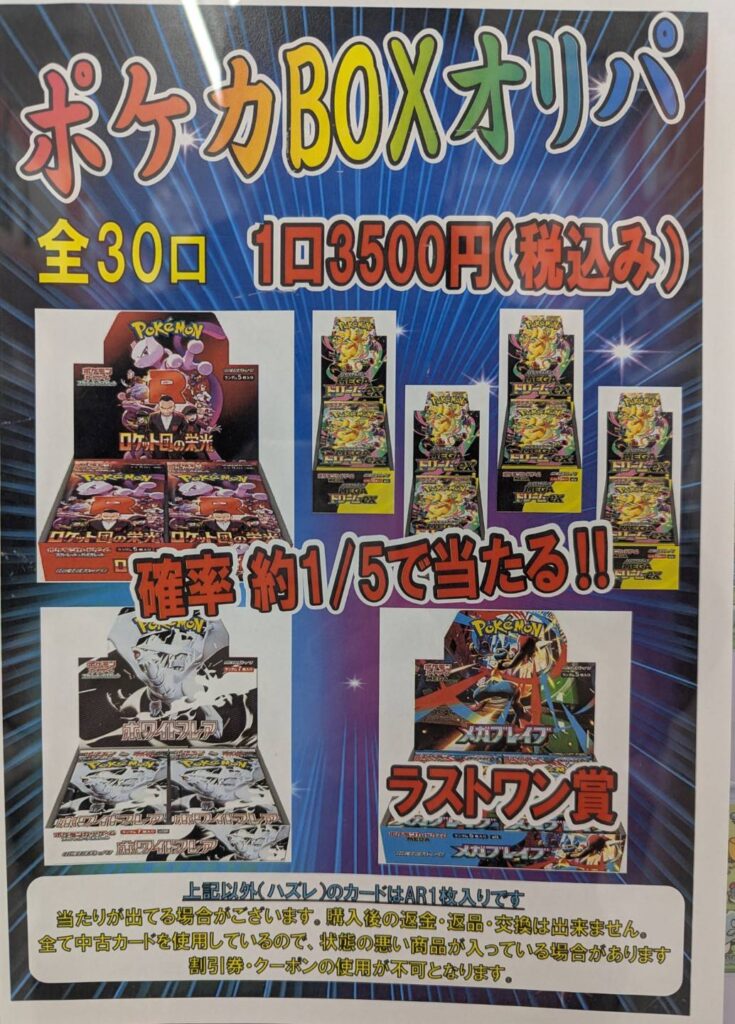 1口3500円 税込 ポケモンカードBOXオリパ 販売スタート致しました!!