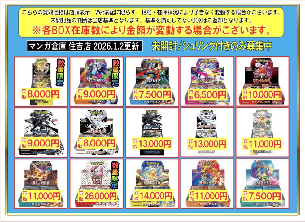 住吉店 ポケモンカードBOX買取金額を 更新しました。 買取お待ちしており…